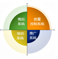 質(zhì)量控制系統(tǒng)、售后服務(wù)系統(tǒng)、應(yīng)用培訓(xùn)系統(tǒng)、獨(dú)特的市場(chǎng)推廣系統(tǒng),讓經(jīng)銷商60天內(nèi)快速賺錢